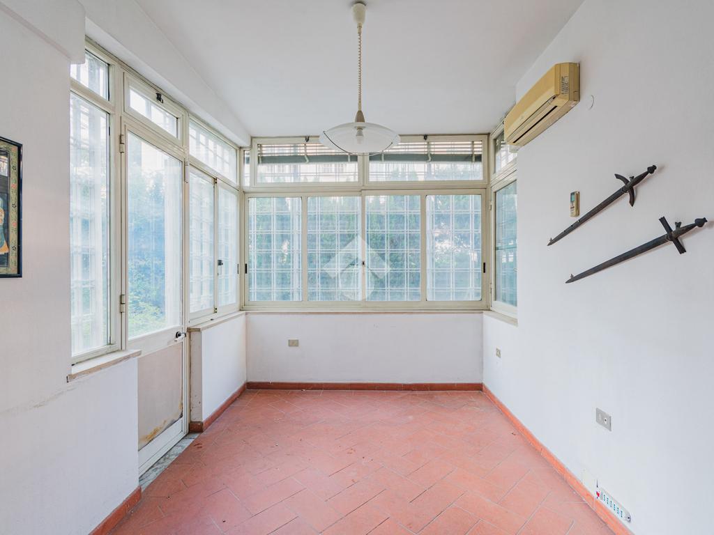 La soluzione, che si trova all’interno di un’elegante palazzina di soli cinque piani, è così composta: ampio ingresso, salone, cucina abitabile, due camere da letto matrimoniali, veranda regolarmente condonata, doppi servizi di cui uno finestrato. Internamente l’appartamento ha una superficie utile netta di 100 mq.